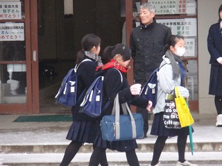 今日は大寒。昨日の夜から降った雪で、昨日とはうって変わっての天気です。道路もツルツルです。1,2年生は実力テストも終わり、いつも通りの学校生活が始まりました。私立高校の一般入試もいよいよ終盤戦です。頑張れ!3年生。