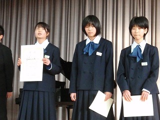 1月20日(火)の全校朝会で、男子バレー部の奥山くんから「春季バレーボール交流大会で男子第2位になりました。」と大会結果報告がありました。「2月の県大会でも頑張ります。」と決意表明をしてくれました。