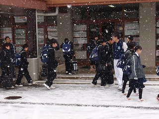 この日の朝、校長先生は朝早く出ると話を聞いていましたが、私が出勤するといつも通り教室の黒板には激励の言葉が書かれてありましたし、生徒昇降口前の雪も掃かれていました。さらにHPも更新してから山形県の東北スキー大会に出発したようです。すごいです!