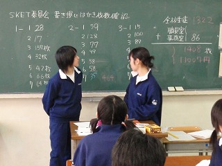 この日のSKET委員会では、「書き損じハガキ」以外に北陵祭で取り組みをした「募金」の金額も数えました。募金額は総額11,007円でした。ご協力ありがとうございました。「書き損じハガキ」1408枚と募金額11,007円はダルニー奨学金へ送ります。「ダルニー奨学金」は、「書き損じハガキ」280枚で1人の生徒を1年間援助できます。ですから今回の取り組みで6人の生徒を1年間(あるいは2人の生徒を3年間)援助できることになります。
