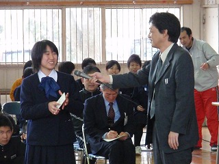 生徒会執行部の中嶋さんの「お礼の言葉」がよく話を聞いて考えた感想発表で立派でした。