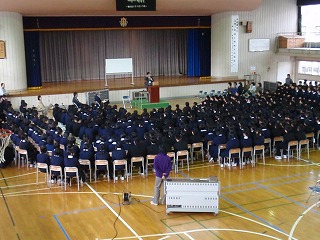 「あきらめないで、好きなことを続けよう!」が締めくくりの言葉でした。保護者の方々は15人ほど足下の悪い中、聴きに来ていただきました。