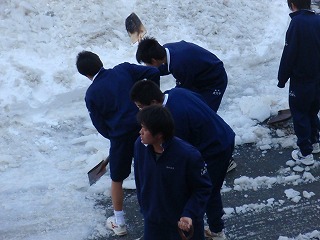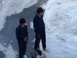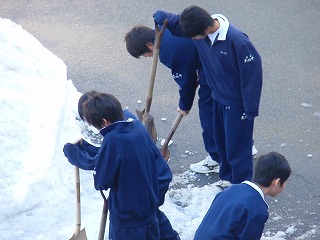 2月4日(水)昼休みを使って交通委員会のメンバーが、昇降口前の氷割りをしてくれました。明日から登校がしやすくなりました。ありがとう!