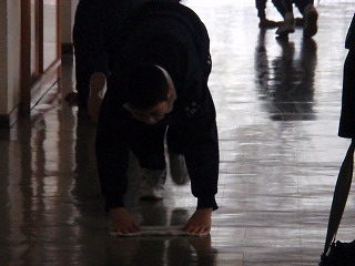 寒くても、いつも通り雑巾がけです!男子卓球部