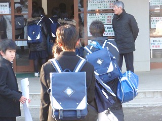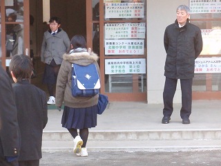 今朝の最低気温は−8℃です。昨日同様今日もとても寒い朝でした。昇降口前の氷は前日昼休みに交通委員会と昼の外掃除ですっかりなくなって歩きやすくなりました。ありがとう!