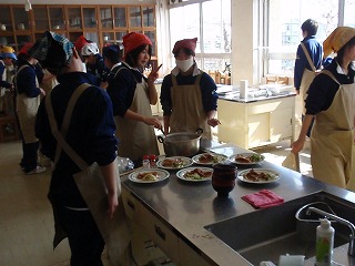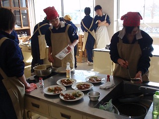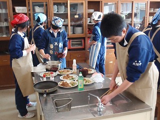 楽しく調理実習です☆調理室からいい匂いです!(2年4組編)