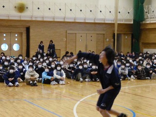 ※2月9日(月)城北小学校での様子です。女子バドミントン部、女子ハンド部、生徒会の様子です。