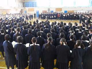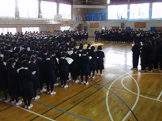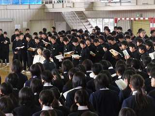 2月10日(火)全校朝会後、1,2年生は卒業式の合唱『大地讃頌』の練習を始めました。1月の練習では、パートごとに練習してきましたが、今日の練習は一堂に会しての練習となりました。卒業式まであと1ヶ月。いい合唱ができるようにひとり一人頑張りましょう。