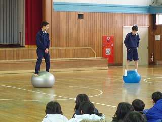 ※2月9日(月)北厨川小学校での様子です。水泳部と女子バスケット部の発表です。