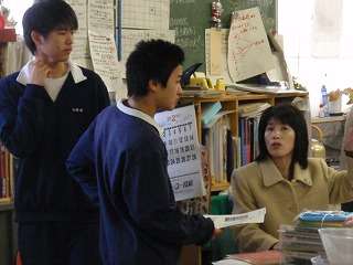 2月9日(月)6校時、2年生の修学旅行での訪問先がほぼきまり先週とは違って静かな職員室です。先週までは先生方も電話かけに大忙しでしたが。しかし、決まりそうで決まらない生徒がちょっと心配になって先生と相談しています。