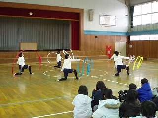 ※2月9日(月)北厨川小学校での様子です。男子テニス部と新体操部と体操部の発表の様子です。