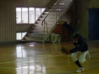 2月中旬になりましたが、校庭は雪で使えません。この日8日の午後、体育館に集まって部活動が始まりました。柔らかいボールを使って、守備練習と打撃練習を行っていました。野球部の部活動は、通常の日は体育館割り当てがありませんから、休日取材に行くしか撮影できません。頑張れ!野球部。今年の活躍を期待しています。