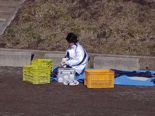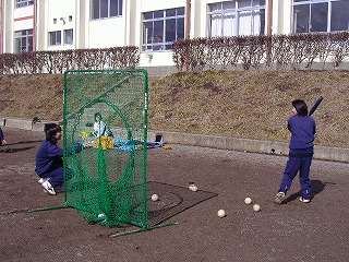 2月14日(土)は、ものすごい風が吹いていました。その中で、ソフトボールは約2時間半、外で練習しました。キャッチボール、バント、ティーバッティングと、普段の練習を普段どおりに行いました。最大の敵は「北風小僧」です。立っているのもやっと。時には目もあけられないほどの風でした(写真上・中)。中には、ボールふきに熱心に取り組む生徒もいます(写真下)。この努力が春に実を結ぶといいですね。