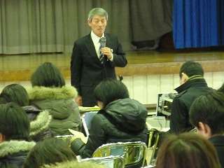 今日の話は時間的制約がありましたが、校長先生は常日頃このような話をされます。「中学校生活での様々なトラブルは携帯電話から起こることがある。中学生に是非持たせないでほしい。小学校時代には同じ小学校の人との付き合いが、中学校時代には同じ中学校区(他の小学校との交流など)の人との付き合いで十分である。さらに、高校生になれば、学区がなくなるので携帯の必要性が出てくるかも知れません。中学校時代に携帯電話を持つと、急に人との付き合いが広範囲となり、子どもたちでは対応できなくなるし、その必要はありません。」と話をされています。