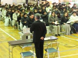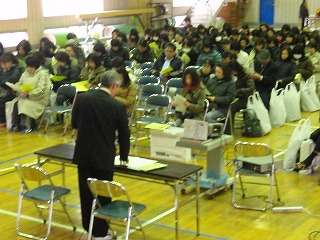 2月18日(水)2時30分から体育館で、4月に入学する生徒への「新入生保護者説明会」が行われました。はじめに校長先生から「学校の経営方針」と「携帯電話を持たせないでほしい」という話でした。