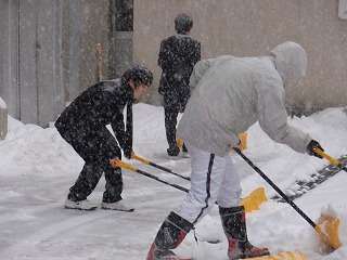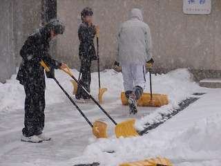 寒い朝でしたがいい天気が続いていました。今朝20日は雪降りです。しかも気温が低いせいかさらさらのパウダースノウです。全く止む様子はありません。まずは、生徒たちが登校しやすいように雪かきから始まる今朝の様子です。来週からは温かくなる予報です。登校した後、雪かきを手伝ってくれる生徒たちです。