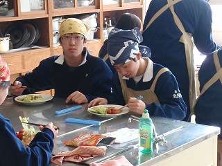 2月17日(火)の3校時、2年4組の調理実習が行われていました。私もメニューの「サケのソテー」をいただきました。あっさりとした味でした。ごちそうさまでした。
