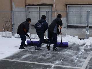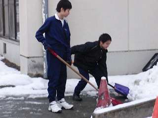 2月22日(日)の午後、男子卓球部は「みたけ活動センター」で部活動を行いました。午後から雪が激しくなり積もってしまいました。部活動終了後、いつもお世話になっている「みたけ活動センター」の駐車場の雪かきを行いました。迎えに来たお父さんにも手伝っていただきました。