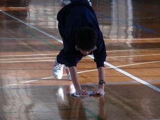 エール委員長の荒谷くんが集会後「遅刻が多いです。朝トレに参加するなどして、遅刻しないようにしましょう。」と呼びかけました。