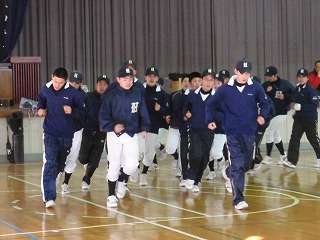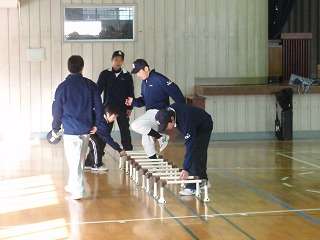 3月1日(日)体育館で野球部が部活動を行っていました。3月になりましたが、校庭はまだまだ雪が残っています。しかし日中は温かい気温ですので校庭で野球ができるのもまもなくです。それまで頑張って体育館内で練習です。