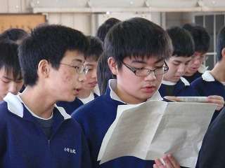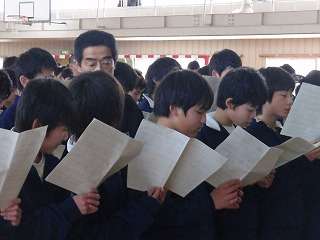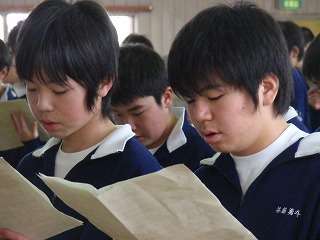 2月12日(木)の昼休み、卒業式と入学式で披露する『タンホイザー行進曲』のパート練習が行われています。1年生は初めて挑戦する曲ですので、2年生にリードされて練習中です。卒業式、入学式にすばらしい合唱を披露できるように、頑張りましょう♪