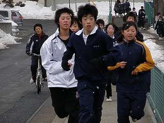 みんなより少し早く登校して、駅伝メンバーは元気よくロード練習に出ていきました。多くの部から駅伝練習へ参加しています。次第に人数も多くなってきました。雪の心配が少なくなり、いよいよロードの練習も本格的に開始です。