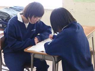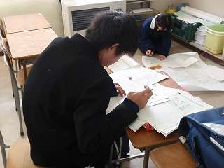 3月2日(月)の放課後、新聞作りの中に「「きずな学習」の訪問先」のプランニングシートを作っている生徒たちがいました。なかなか完成しないようです。でも、完成しないと当日迷子になりますよ。