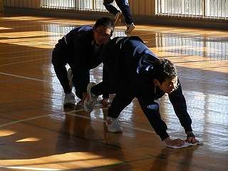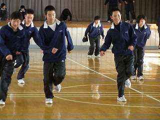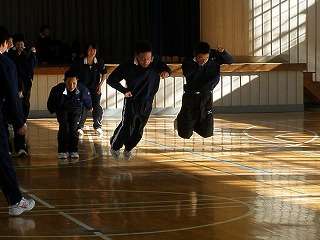 以前までは部によって朝練習を行ってきましたが、「やる部、やらない部」があってさらに基礎体力作りを兼ねて、ということで始まったこの「朝のトレーニング」ですが、すっかり北陵中学校の朝の名物になりました。毎日のわずかな時間での練習ですが市民体で成果が出てくれると信じています。