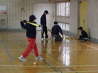 ※3月8日(日)午後の体育館で練習する野球部の様子です。