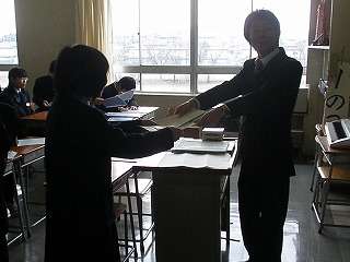 修了式後教室で修了証書がひとり一人に手渡されました。学級替えをするということですから、この学級で一緒に生活するのも今日が最後です。