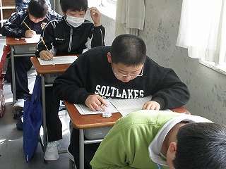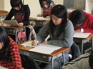 ※3月23日(月)新入生一日入学の様子です。真剣にテストを受けました。