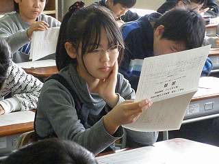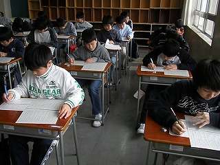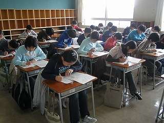 今月23日に、新入生一日入学が行われました。北厨川小学校の生徒3クラス、城北小学校4クラス、月が丘小学校の生徒30人と区域外入学の生徒が登校してきました。中学校への入学は、期待と不安でいっぱいだと思います。当日は真剣にテストを受けました。
