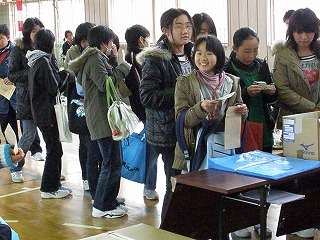 ※3月23日(月)新入生一日入学の様子です。体育館で内ズックを買う生徒の様子です。