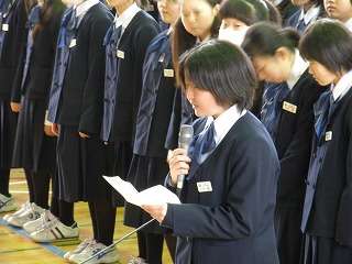 今日25日(水)は、離任式です。さようなら。お元気で!生徒を代表して執行部から感謝の言葉が。