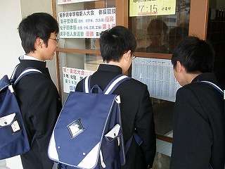 新2年生はクラス替えが行われ4日(金)の朝、生徒昇降口に学級名簿が掲示されました。新しい学級が楽しみであり、不安でもあります。
