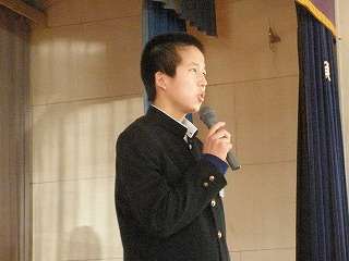 4月7日(火)生徒会執行部が新入生へ生徒会組織の説明会をしました。生徒会長から新入生へこの会のねらいを伝えました。