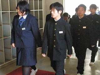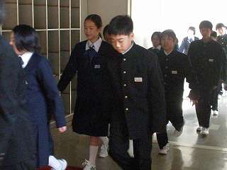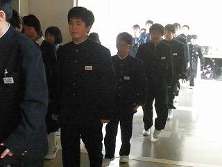 4月7日(火)生徒会執行部が新入生へ生徒会組織の説明会をしました。先輩方から拍手をもらって入場です。