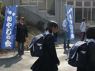 今までおやじの会にず〜と関わっていただいていた「おやじの会長の小原さん」。「今日が最後のお仕事(挨拶運動)です。」と言っていました。長年北陵中学校のために活動していただきありがとうございました。