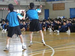 ※4月8日(水)部活動説明会の様子です。男子バドミントン部の発表の様子です。