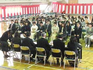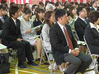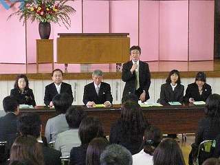 入学式で新入生退場後、体育館でPTA入会式が行われました。PTA会長、学校長の話に引き続き、1学年長の先生から「心も体も健康な生徒を育て、学校へ行くのが楽しみ」という、学年、学級作りを目指しますと話がありました。