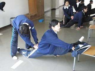 春休みも残り少なくなりました。いよいよ明日から新学期。「今年こそ東北大会出場を」という思いで、全員が取り組んでいます。柔軟体操の最中でした。毎日こうやって体が柔らかくなるんだ〜と感心しました。