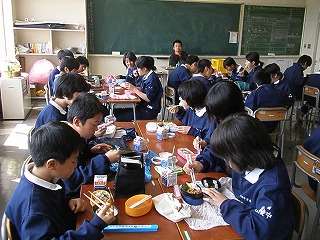 校長先生が1年2組の昼食にお邪魔しました☆校長先生自ら昼食の様子を撮影!(その3)