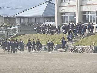 5月1日(金)の避難訓練では、早い学級は3分、遅い学級が6分かかりました。
