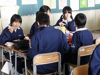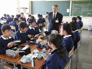校長先生が1年2組の昼食にお邪魔しました☆校長先生自ら昼食の様子を撮影している様子を撮影しました!(その3)