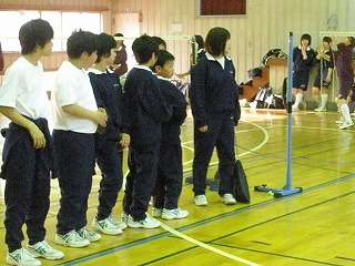 ※5月1日(金)バドミントン部に参加する1年生の様子です。市民体に1年生も応援隊で参加します。その応援の仕方の練習中です。