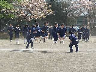 ※5月8日(金)体育祭練習で長縄跳びの練習をする様子です。