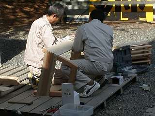 ※5月7日(木)応援用の台を作成する用務員さんです。