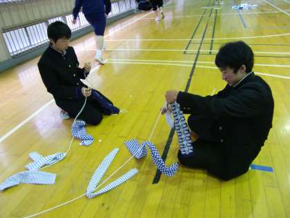 ☆体育祭に向けて心をこめて3年生ムカデ作り☆(その6)