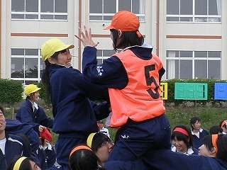 ※13日(水)に行われた「体育祭総練習」女子騎馬戦の様子です。