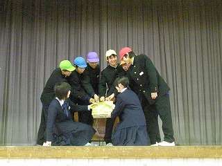 生徒朝会で、体育祭団長が団体種目の対戦相手の抽選会☆(その2)